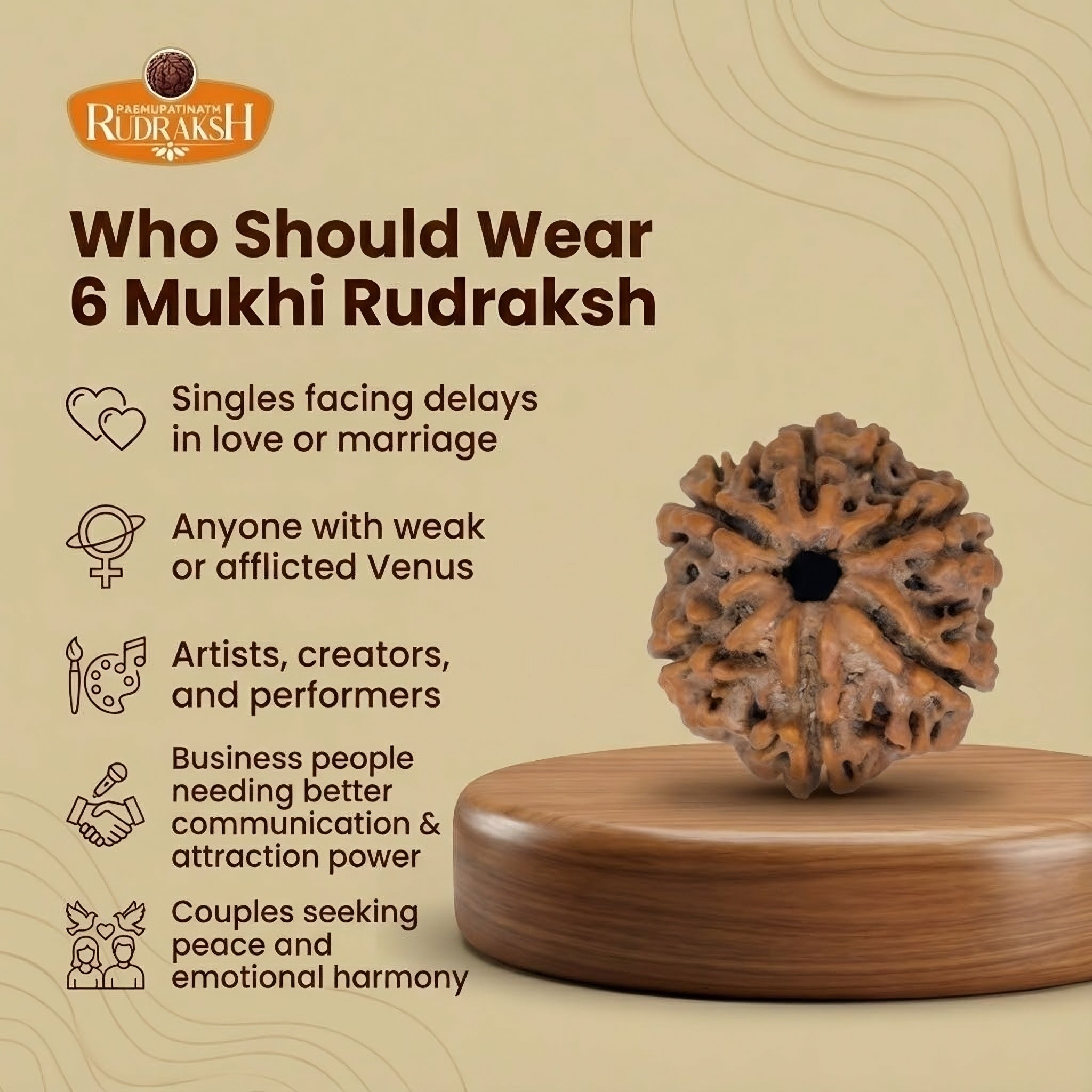 Unlock unwavering focus and emotional strength with the 6 Mukhi Nepali Rudraksha, the divine representation of Lord Kartikeya, the Commander of the Celestial Army. This powerful bead is essential for students, speakers, and professionals who require intense concentration and dynamic mental energy.